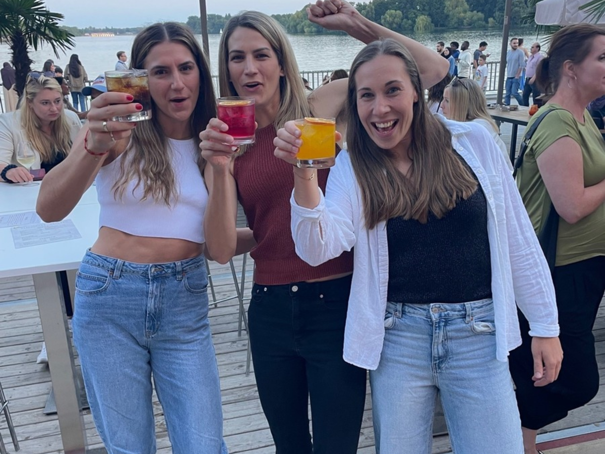Die mit Olympia-Gold geehrten 3x3-Basketball-Siegerinnen landeten Donnerstagmittag in Hannover und feierten am Abend direkt ihren Triumph am Maschsee. Svenja Brunckhorst, Sonja Greinacher und Marie Reichert vom Turn-Klubb zu Hannover luden Teammitglieder und Freunde zur Gold-Sause ins Tulum am Nordufer ein. Die HVG spendierte Champagner und schwarz-rot-goldene-Cocktails zum sensationellen Sieg.