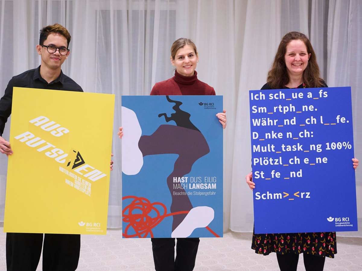 Stolpern, Rutschen und Stürzen - scheinbar harmlose Missgeschicke, die jedoch schwerwiegende Folgen haben können. Diese Unfallursachen gehören zu den häufigsten im Alltag und besonders am Arbeitsplatz. Mehr als jeder fünfte meldepflichtige Arbeitsunfall geht auf sie zurück. Schon kleine Unachtsamkeiten oder Hindernisse im Weg können zu schmerzhaften und manchmal sogar lebensbedrohlichen Verletzungen führen. Neben gesundheitlichen Schäden entstehen auch wirtschaftliche Folgen wie Ausfallzeiten, Behandlungskosten und ein erhöhtes Unfallrisiko. Grund genug, das Themengebiet in den Fokus des diesjährigen Plakatwettbewerbs der BG RCI zu stellen.