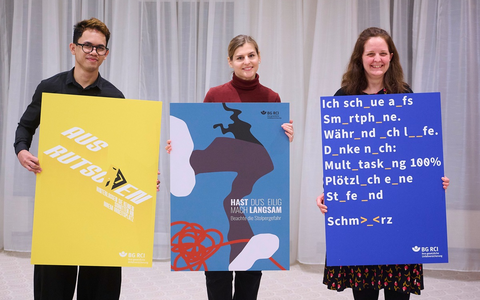Hast du's eilig, mach langsam / BG RCI zeichnet Plakate zu Unfällen durch Stolpern, Rutschen und Stürzen aus