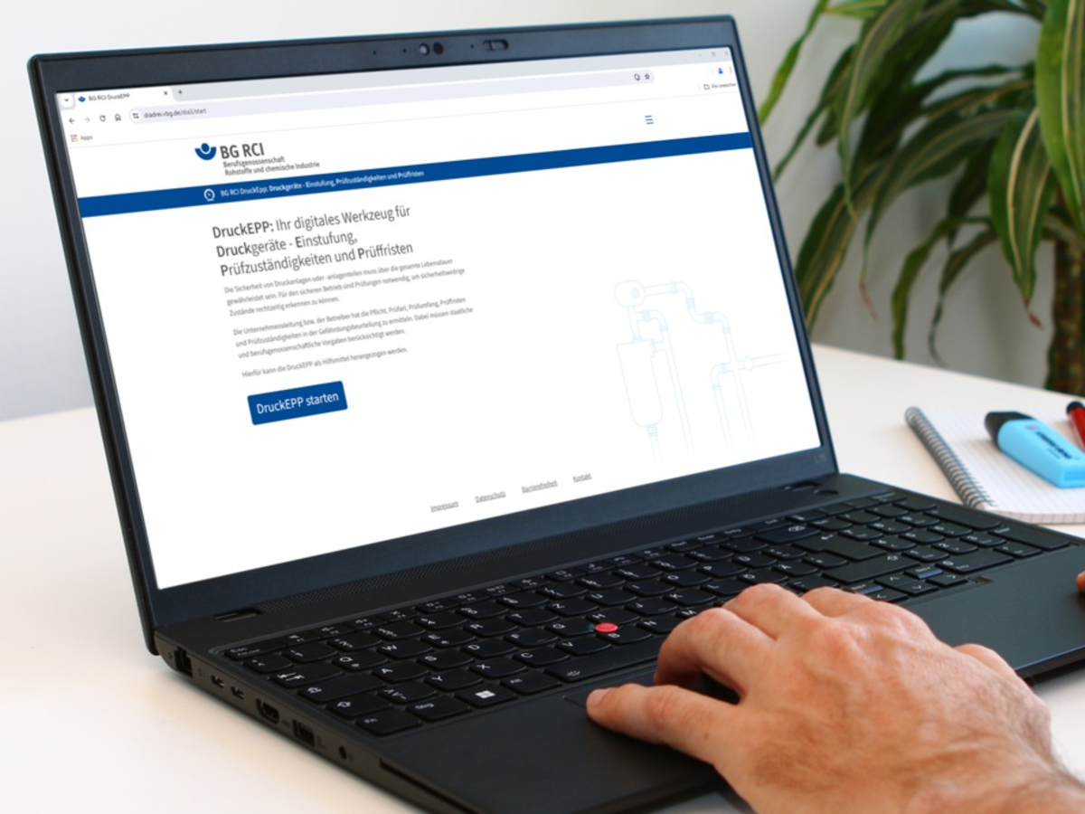 Eine neue, einfach zu bedienende Webanwendung der BG RCI hilft bei der Beantwortung dieser Fragen. In wenigen Schritten leitet die "DruckEPP" zum ausführlichen Ergebnis inklusive Einstufung, Prüfzuständigkeit und Prüffristen für Druckgeräte.