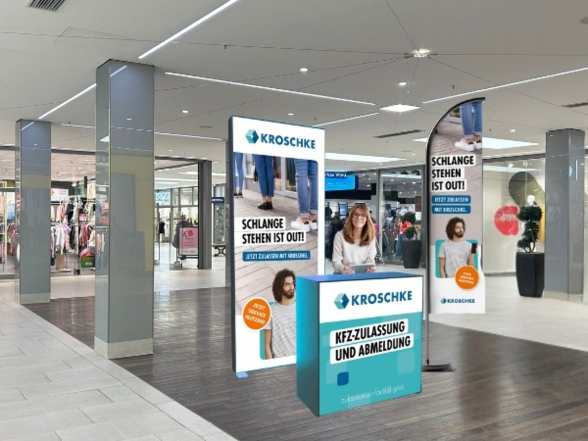 Mit dem neuen Standort mitten in Kirchheim möchte Kroschke den Service dahin bringen, wo die Menschen im Alltag sowieso unterwegs sind. Egal ob am Samstag, in der Mittagspause oder nach Feierabend - wer gerade im TeckCenter ist, kann spontan sein Fahrzeug zulassen oder abmelden.