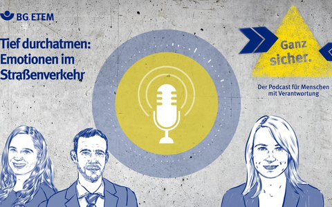 Der Podcast der BG ETEM ist auf der Webseite der BG ETEM unter der Adresse www.bgetem.de/ganzsicher zu finden. Ebenso bei Spotify, Soundcloud, Deezer, Google Podcasts, Pocket Casts sowie Apple Podcasts. Zur Folge "Tief durchatmen: Emotionen im Straßenverkehr" geht es hier.