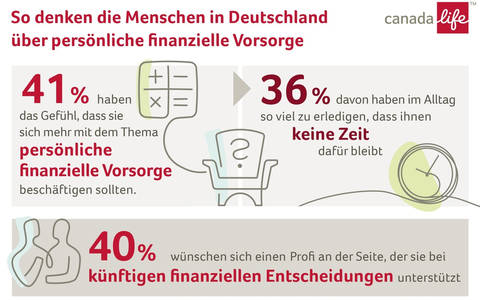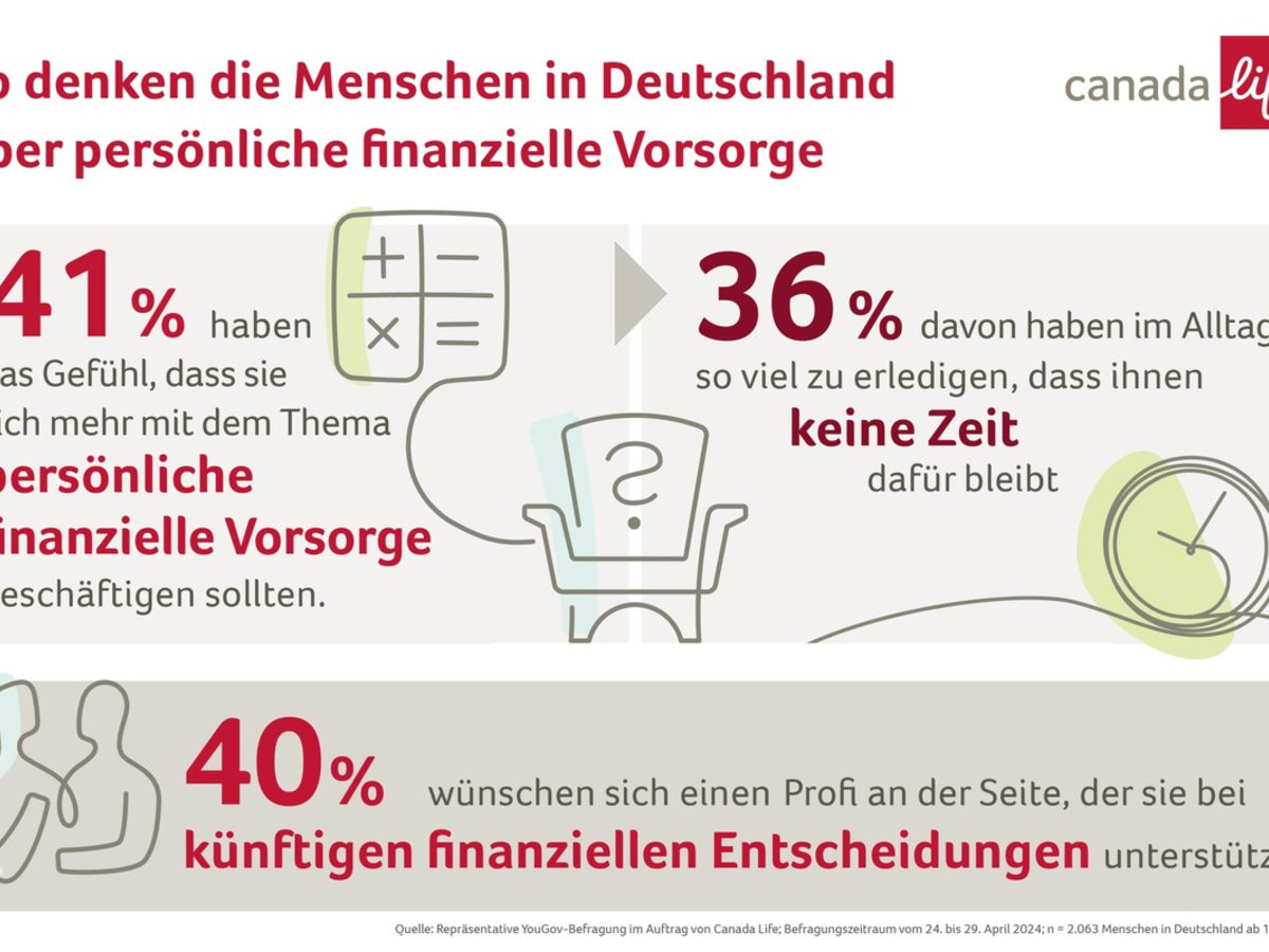 "Ăber 40% der Umfrage-Teilnehmer ahnen es schon: Die lange Bank ist der Feind guter persönlicher Vorsorge. Und den Hauptgrund fĂŒrs Aufschieben kennen wir alle: Immer mehr Alltagsaufgaben fordern uns. Viele davon stehen gar nicht auf dem Zettel, können uns aber erheblich belasten, wie der bereits hĂ€ufig gebrauchte Begriff "Mental Load" verdeutlicht", kommentiert Dr. Igor Radovic, Vorstand bei Canada Life, die Umfrage-Ergebnisse. "Wichtig ist dann, der Vorsorge dennoch einen Raum zu geben. Diesen Raum schafft man, indem man sich UnterstĂŒtzung durch einen Profi holt - fĂŒr 40% der Befragten ein wichtiger Schritt, um die finanziellen Entscheidungen von Morgen zu treffen. Eine gute Strategie, denn so kann man Vorsorge-Aufgaben in Ruhe und systematisch angehen und Schritt fĂŒr Schritt lösen. Das entlastet!"