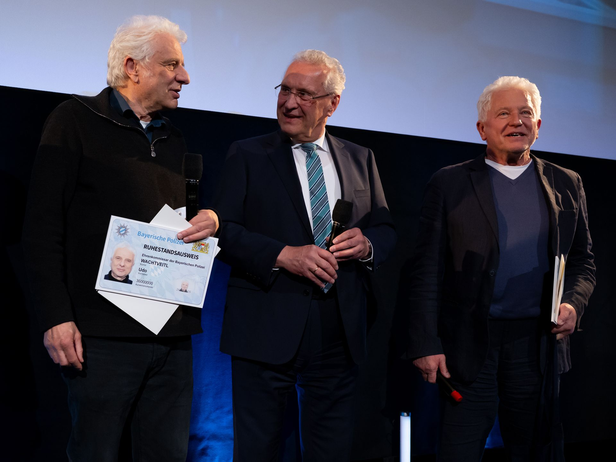 Bayerns Innenminister Joachim Herrmann (CSU), der oberste Dienstherr der bayerischen Polizisten und nach eigenen Angaben «bekennender "Tatort"-Fan», verlieh ihnen darum - und weil die sie «ein realistisches Bild von der Polizeiarbeit» gezeigt hätten - nach dem Ende des Films offiziell ihre Ruhestandsurkunde.
