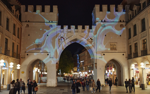 Lichtinstallation am Münchner Karlstor - Auftakt des Brustkrebsmonats Oktober / Illumination setzte Frauen mit metastasiertem Brustkrebs ins Licht