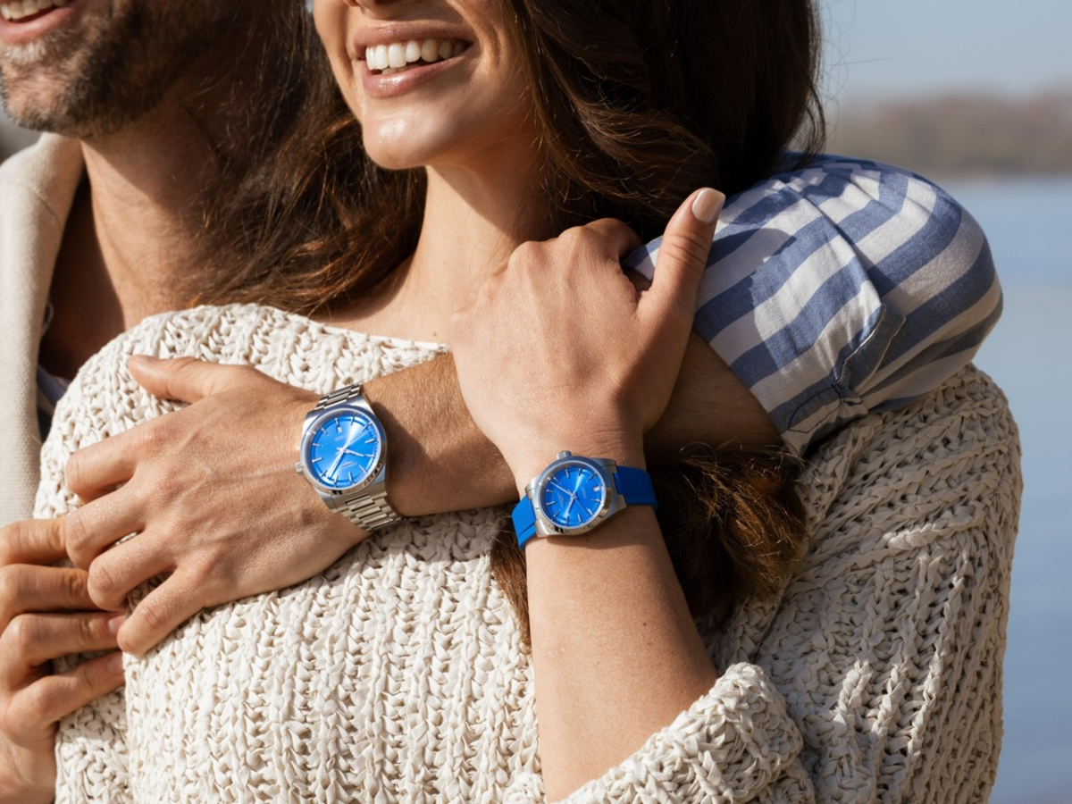 Diese leuchtend blauen Conquest Modelle sind mit 41 mm Durchmesser und Stahlband sowie mit 34 mm und Kautschukband erhältlich. Die beiden sportlich-eleganten Modelle zeichnen sich durch ihre so robuste wie elegante Verarbeitung aus. Die blauen Zifferblätter sind mit einem feinen Sonnenschliff versehen, und die Silhouette der Insel - ein echtes Erkennungszeichen unter Gleichgesinnten - findet sich auf dem transparenten Gehäuseboden der Automatikuhren wieder.