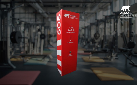 Sicherheit rund um die Uhr: die Notfallsäule von ALMAS INDUSTRIES für Sport- und Fitnessstudios