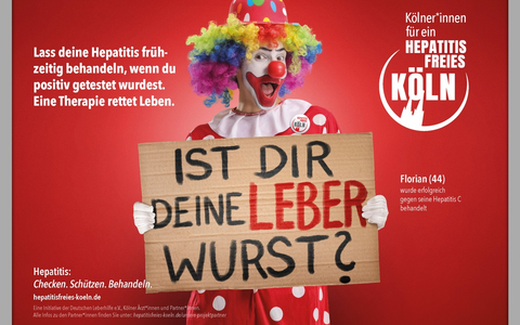 Die Plakataktion ist Teil der Initiative Hepatitis-freies Köln, mit der die Deutsche Leberhilfe e.V. und weitere Projektpartner:innen die Kölner Bürger:innen über die Virushepatitis aufklären möchten. Auch das Pharmaunternehmen Gilead Sciences GmbH zählt zu den Unterstützern. "Als Spezialist für Lebererkrankungen begrüßen und fördern wir derartige Initiativen sehr", sagt Martin Flörkemeier, Pressesprecher bei Gilead. "Sie tragen dazu bei, die Virushepatitis so weit zurückzudrängen, dass sie keine gesundheitliche Gefahr mehr darstellt." Um dieses Ziel zu erreichen, engagiert sich Gilead zusammen mit Ärzt:innen, Suchthilfen und Initiativen in vielen weiteren Projekten. "Wir wollen damit vor allem die Versorgung jener Bevölkerungsgruppen verbessern, die ein erhöhtes Ansteckungsrisiko und oft auch einen eingeschränkten Zugang zur Gesundheitsversorgung haben", sagt Flörkemeier. Allerdings ist die Virushepatitis nicht auf diese Gruppen beschränkt, woran auch ein weiteres Plakat der Aktion erinnert: 'HEPATITIS KANN JEDE*N TREFFEN!' ist darauf zu lesen. Wurst sollte sie jedenfalls keinem sein.