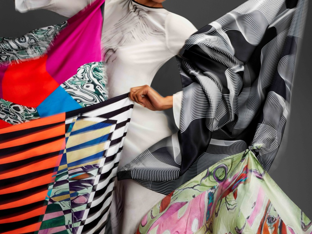 Bei der "Water Silks"-Kollektion handelt es sich um eine limitierte Produktion, um beispielhaft das Potenzial des digitalen Textildruck mithilfe der Monna Lisa-Drucker fĂŒr Modemarken und Designer:innen aufzuzeigen.