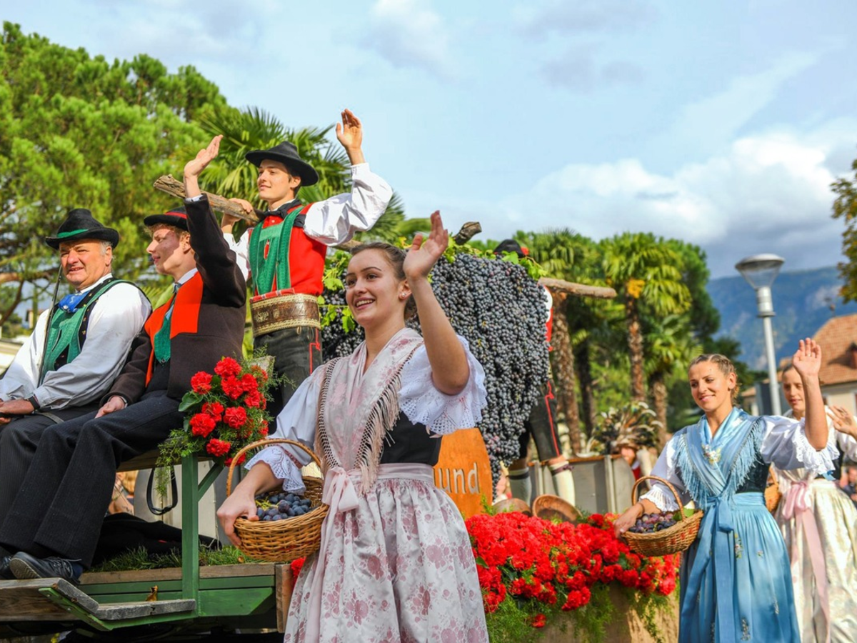 Das Meraner Traubenfest, das seit 1886 jedes Jahr im Oktober stattfindet, ist eines der ältesten und bekanntesten Erntedankfeste in Südtirol. Es markiert den Höhepunkt der Erntesaison und feiert die reiche Weinbau- und Obstbaukultur der Region.