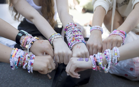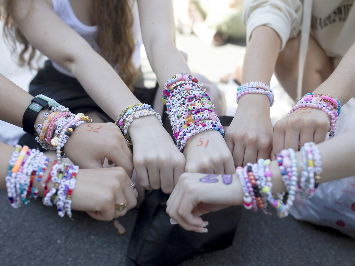 Ihre Fans haben diese Aufforderung wortwörtlich genommen und knüpfen Armbänder, um diese bei Konzerten untereinander zu tauschen. Auf Plattformen wie Tiktok, Instagram und Youtube kursieren aufwendige Anleitungen für Perlenarmbänder im Swift-Design. Es gibt dazu sogar Workshop-Angebote verschiedener Anbieter. In die meisten Armbänder werden mithilfe von Buchstaben-Perlen etwa Songnamen und -texte eingearbeitet.