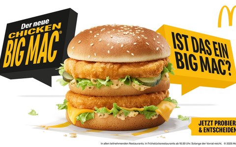 Ein Stück Fast-Food-Geschichte erhält ein neues Kapitel: Mit dem zeitlich limitierten Chicken Big Mac® bringt McDonald's Deutschland eine neue Variante des legendären Big Mac® auf den deutschen Markt. Neben der originalen Rezeptur können nun auch zwei Chicken-Patties das Herzstück des Burgers bilden und stellen die Gäste damit vor eine herausfordernde Wahl. Erhältlich ist der Chicken Big Mac® ab heute bis zum 16. Juli in allen teilnehmenden McDonald's Restaurants solange der Vorrat reicht.
