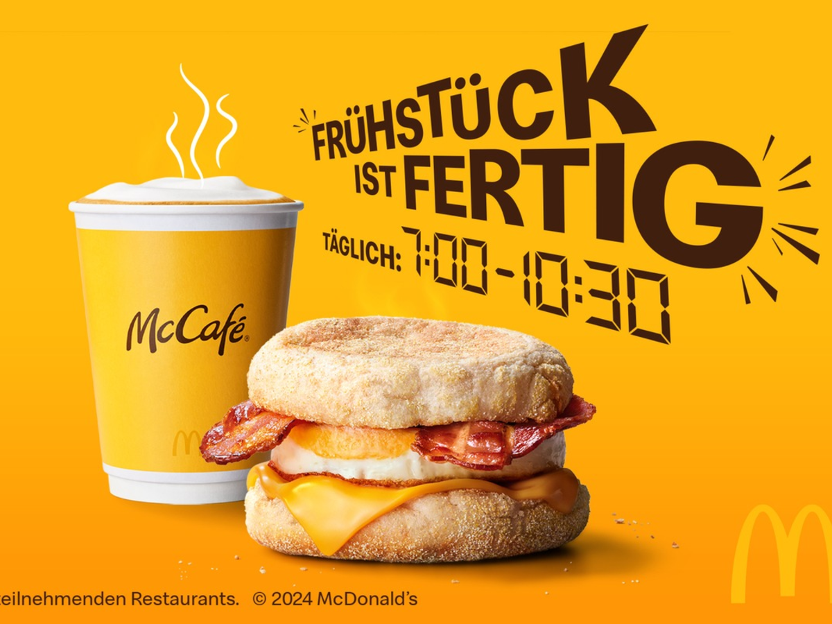 Frühstück ist fertig! Jetzt ganz neu und jeden Tag von 07:00 Uhr bis 10:30 Uhr bei McDonald's