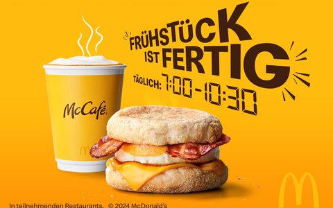 Deutschland ist eine Frühstücksnation - und genau diese erste und für die Gäste so wichtige Mahlzeit hat McDonald's jetzt deshalb neu konzipiert. So hat das Unternehmen ein neues und vielfältiges Frühstückssortiment entwickelt und möchte damit sowohl das Gästeerlebnis weiter optimieren sowie bestehende Marktpotenziale erschließen. Wichtig dabei war es gleichzeitig Komplexität zu verringern und Verlässlichkeit zu zeigen. Deshalb wird es ab sofort deutschlandweit einheitliche Frühstückszeiten bei McDonald's geben. Von 07:00 Uhr bis 10:30 Uhr heißt es jetzt jeden Tag "Frühstück ist fertig!"