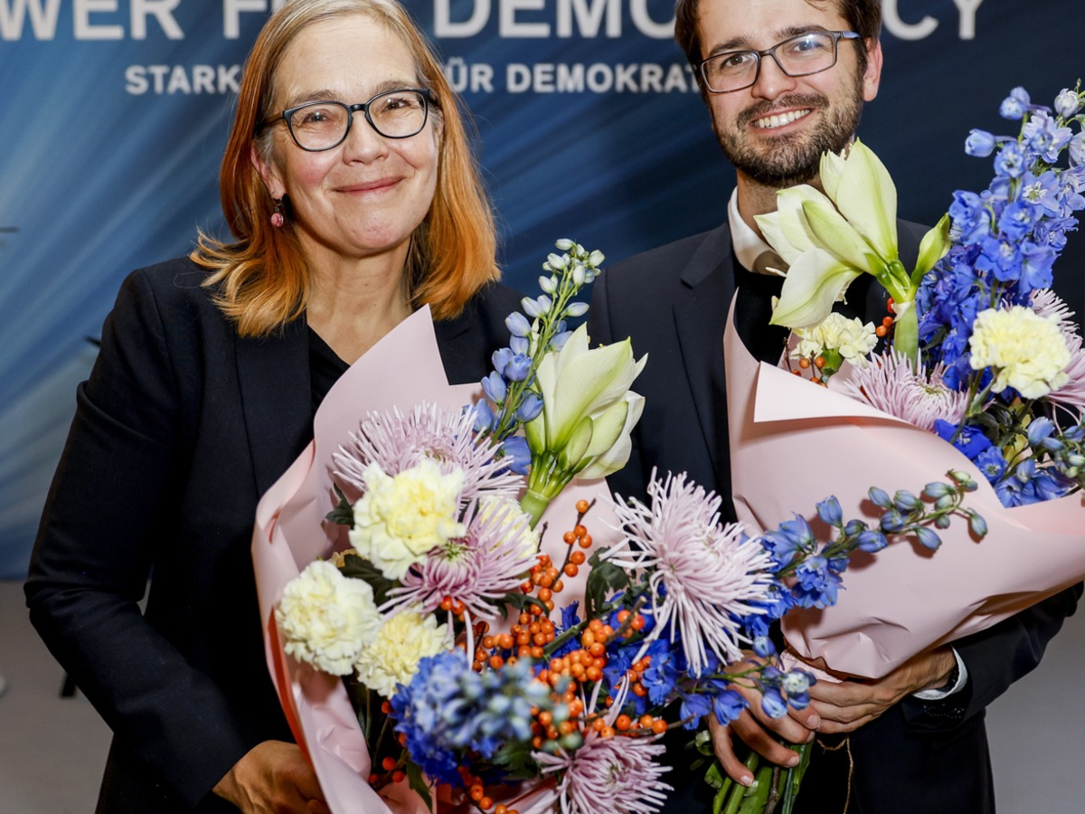 Preisverleihung: Die Organisation CeMAS und die Webdokumentation Gegen uns. erhalten für ihr zivilgesellschaftliches Engagement den Demokratiepreis Power for Democracy