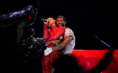 Usher selbst wechselte mehrfach sein Outfit, zog sich das Oberteil dann ganz aus, tanzte auf einer Bühne, die mal einer Uhr und mal einem Feuer glich - und zeigte sich zeitweise sogar auf Rollschuhen. Von den rund 60 000 Zuschauern im Stadion gab es dafür viel Jubel und Applaus. Im Publikum des Super Bowls saßen Stars wie Queen Latifah, Beyoncé und Jay-Z, Lizzo, Leonardo DiCaprio, Jeff Goldblum, Justin und Hailey Bieber, Martha Stewart, Travis Scott, Kelly Clarkson, Lady Gaga und Fat Joe sowie der Technologie-Milliardär Elon Musk.
