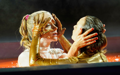Apropos laufen: Fast unablässig quillt in «Der Diplomat» Blut aus der Leiche von Siegfried, die während des Stücks vor dem Dom liegt. Insgesamt sollen pro Aufführung rund 100 Liter Kunstblut mit einem Pumpensystem über einen mit Erde bedeckten Teil der Bühne verteilt werden.