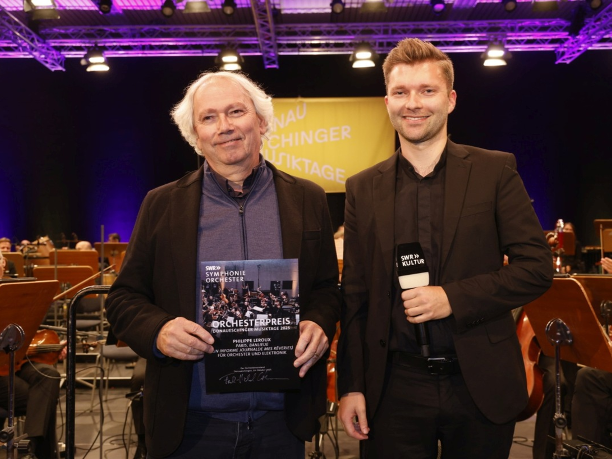 "Paris, Banlieue" heißt das neue Werk von Philippe Leroux, das beim Eröffnungskonzert der Donaueschinger Musiktage vom SWR Symphonieorchester unter der Leitung seines Chefdirigenten François-Xavier Roth zur Uraufführung gebracht und im Anschluss an das Abschlusskonzert mit dem diesjährigen "Orchesterpreis" ausgezeichnet wurde. Leroux thematisiert in seinem Werk das Beziehungsgeflecht zwischen dem Zentrum von Paris und seinen Vorstädten - vor allem im Hinblick auf die Bewegungen der Menschen, die durch deren tägliche Arbeit ausgelöst werden. Felix Birnbaum, Schlagzeuger des SWR Symphonieorchesters, attestierte dem ausgezeichneten Werk in der Laudatio "musikalische Ideen und Klangvorstellungen, die sich entwickeln dürfen. Die Wahl der Instrumente hat Effekt, die Musik rhythmische Kraft, gelegentlich sogar Groove - und so mancher von uns hatte einen überraschenden Nach-Proben-Ohrwurm. Ein kraftvolles, bildliches Orchesterstück - mit einem Surplus an Elektronik." Mit dem Orchesterpreis ist die Zusage verbunden, dass das prämierte Werk in nachfolgenden Spielzeiten des SWR Symphonieorchesters erneute Aufführungen im Rahmen von Abonnement- und Tourneekonzerten erfährt.
