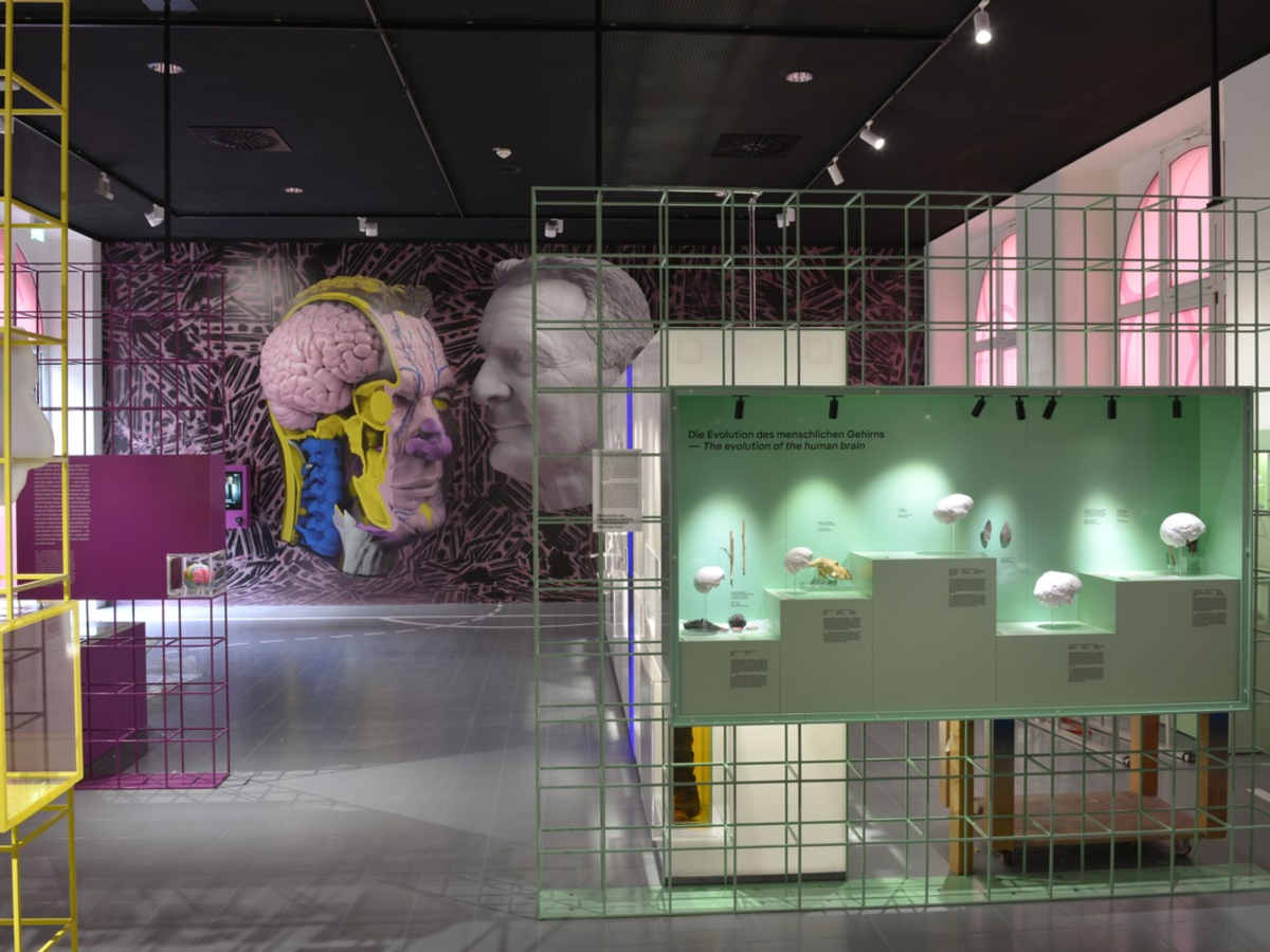 Besuchende erfahren in der Ausstellung, wie das Gehirn aufgebaut ist und welche Funktionen es übernimmt. Anschauliche Modelle und Animationen vertiefen das Verständnis für das Zusammenspiel der verschiedenen Gehirnbereiche. So erklären Darstellungen und Exponate, wie die Großhirnhälften unsere einzigartigen kognitiven Fähigkeiten wie Sprache und Kreativität steuern, während das Kleinhirn für die Motorik und das Gleichgewicht zuständig ist. Der Hirnstamm, als "Lebenszentrale", sorgt für grundlegende Körperfunktionen wie Atmung und Herzschlag. "Die Ausstellung vermittelt so eindrucksvoll, wie das Gehirn als unglaublich komplexes Netzwerk in jeder Sekunde Hochleistung erbringt," erläutert Kurator Maximilian Bugert und fährt fort: "Mikroskopisch kleine Neuronen und Gliazellen sind die Hauptakteure im Nervensystem. Neurone leiten elektrische Signale und bilden Netzwerke für Wahrnehmung, Motorik und Emotionen. Gliazellen unterstützen die Reizübertragung und -leitung und sind an der Immunabwehr im Gehirn beteiligt. Besuchende erfahren mehr über die verschiedenen Typen von Zellen im Nervensystem und deren Funktionen." Ein imposantes Modell eines - vielfach vergrößerten - Neurons gibt faszinierende Einblicke in die winzigen Details der Gehirnstruktur.