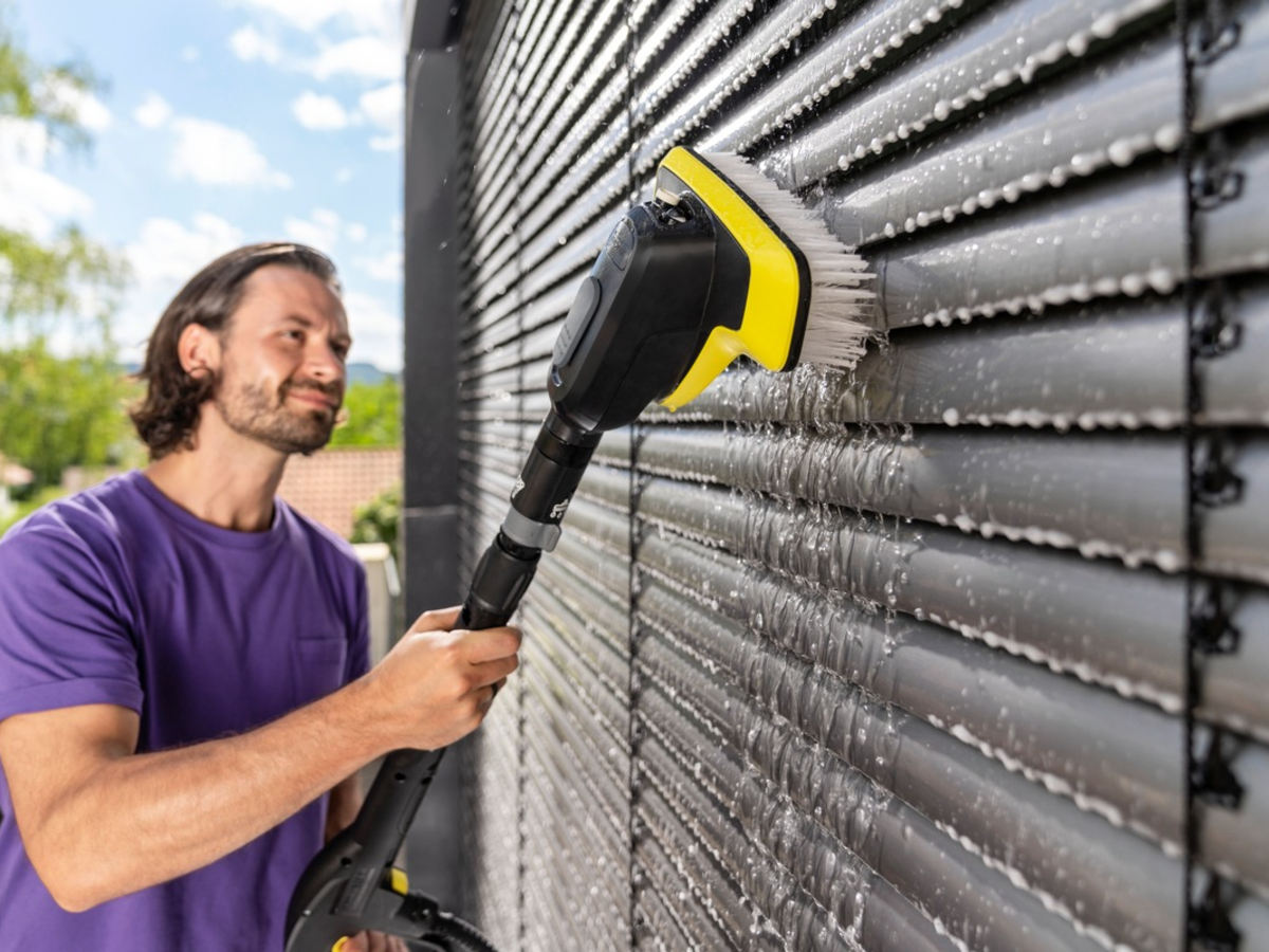 Reinigungsspezialist Kärcher empfiehlt für eine schonende und gründliche Reinigung die Arbeit mit dem Hochdruckreiniger und einer Mutlifunktions-Waschbürste wie der WB 7 Plus. Diese kombiniert gleich drei Funktionen, die beim Reinigen der empfindlichen Oberflächen benötigt werden: Schaum auftragen, mit einem flachen Hochdruckstrahl hartnäckigen Schmutz lösen und mit der weichen Bürste nacharbeiten - alles in einem Gerät vereint, ohne das Zubehör zu wechseln. Neben Rollläden und Lamellen von Außenjalousien können auch Markisen und der Stoff von Sonnenschirmen damit gereinigt werden. Diese werden nach dem Abtrocknen mit einem geeigneten Spray imprägniert, um sie vor Schäden durch Nässe zu schützen.