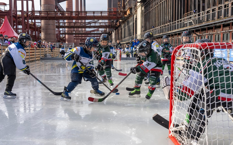Danach wurde es sportlich: Die Bambini-Eishockey-Mannschaften ESC Eagles Essen-West und Herne Miners spielten um den ersten Zollverein-Cup. Das Team aus Essen gewann mit 1:0 und konnte die Trophäe mit nach Hause nehmen. Alle Anwesenden waren sich einig: Nach diesem Auftakt herrscht viel Vorfreude auf viereinhalb Wochen Zollverein-Eisbahn.
