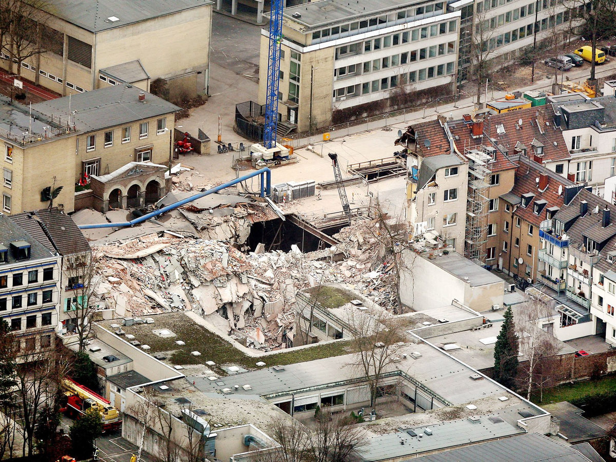 Zu dem katastrophalen Unglück war es am 3. März 2009 gekommen. Ursache waren gravierende Fehler beim Bau einer neuen U-Bahn-Haltestelle in umittelbarer Nähe des Archivs, wie das Landgericht später feststellte. Demnach sei bereits 2005 beim Aushub einer Grube ein dicker Gesteinsblock entdeckt worden. Als der sich nicht entfernen ließ, ließ man ihn einfach drin. Durch das Hindernis bildete sich eine Fehlstelle an einer unterirdischen Wand, die fatale Folgen haben sollte. Am Unglückstag brachen große Mengen Wasser und Sand in die Grube durch. Dem Archiv wurde der Boden entzogen.