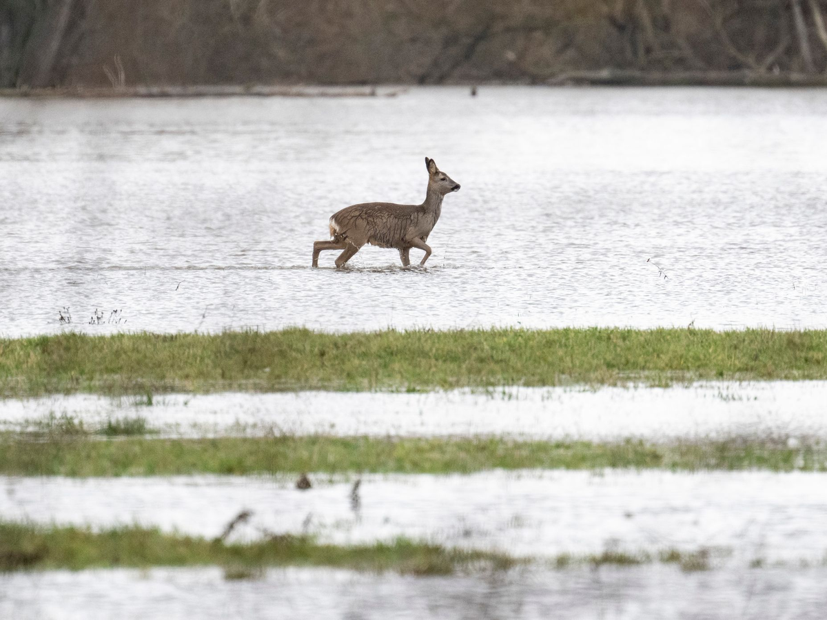 Viele Tiere sind laut Wildtier Stiftung Überschwemmungen gewohnt: Rehe, Hirsche, Wildschweine und Füchse ziehen sich dann an halbwegs trockene Orte im Wald zurück - zumindest in Gebieten, wo das möglich ist.