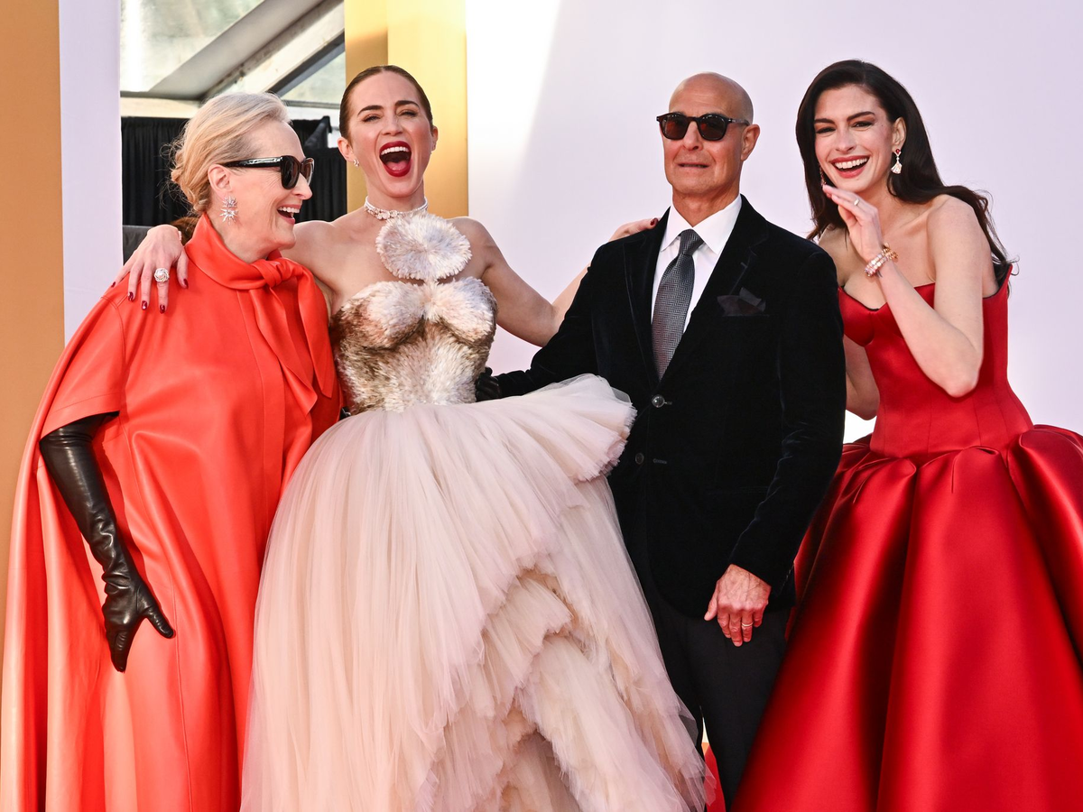 • Meryl Streep (l-r), Emily Blunt, Stanley Tucci und Anne Hathaway besuchen die Weltpremiere von «Der Teufel trägt Prada 2 in der David Geffen Hall. - Foto: Evan Agostini/Invision/AP/dpa