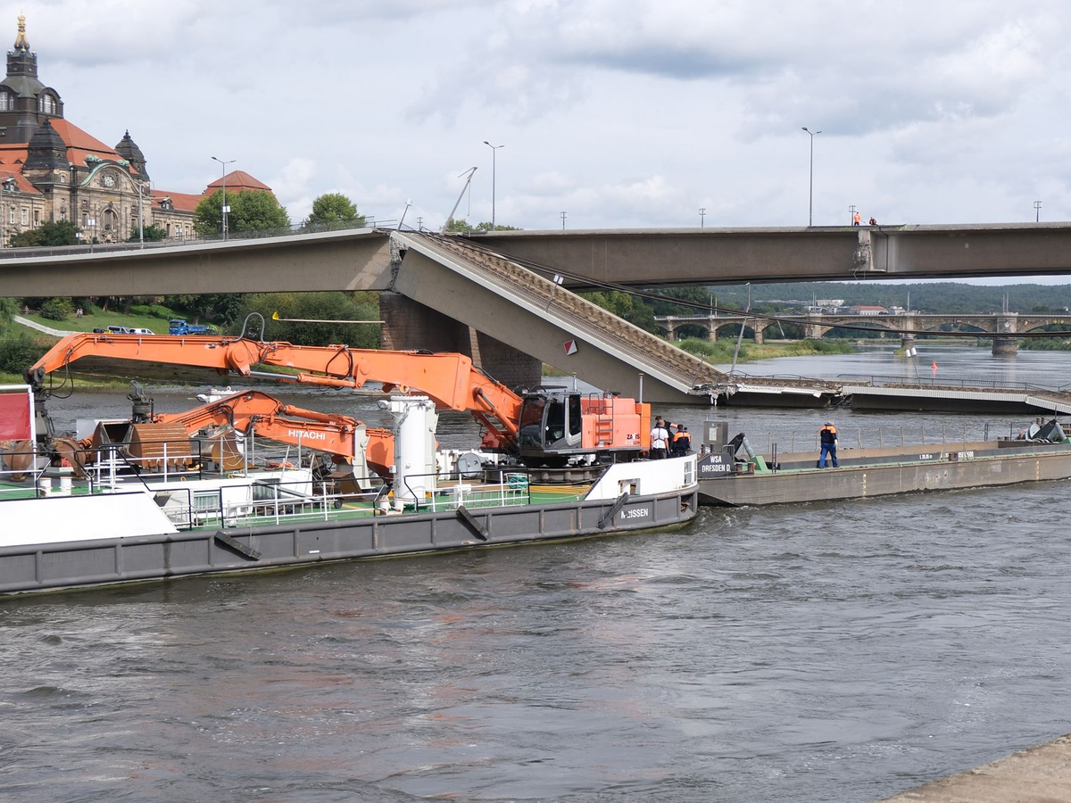 Dresdner Carolabrücke gefährdet - Zerstörtes wird abgerissen