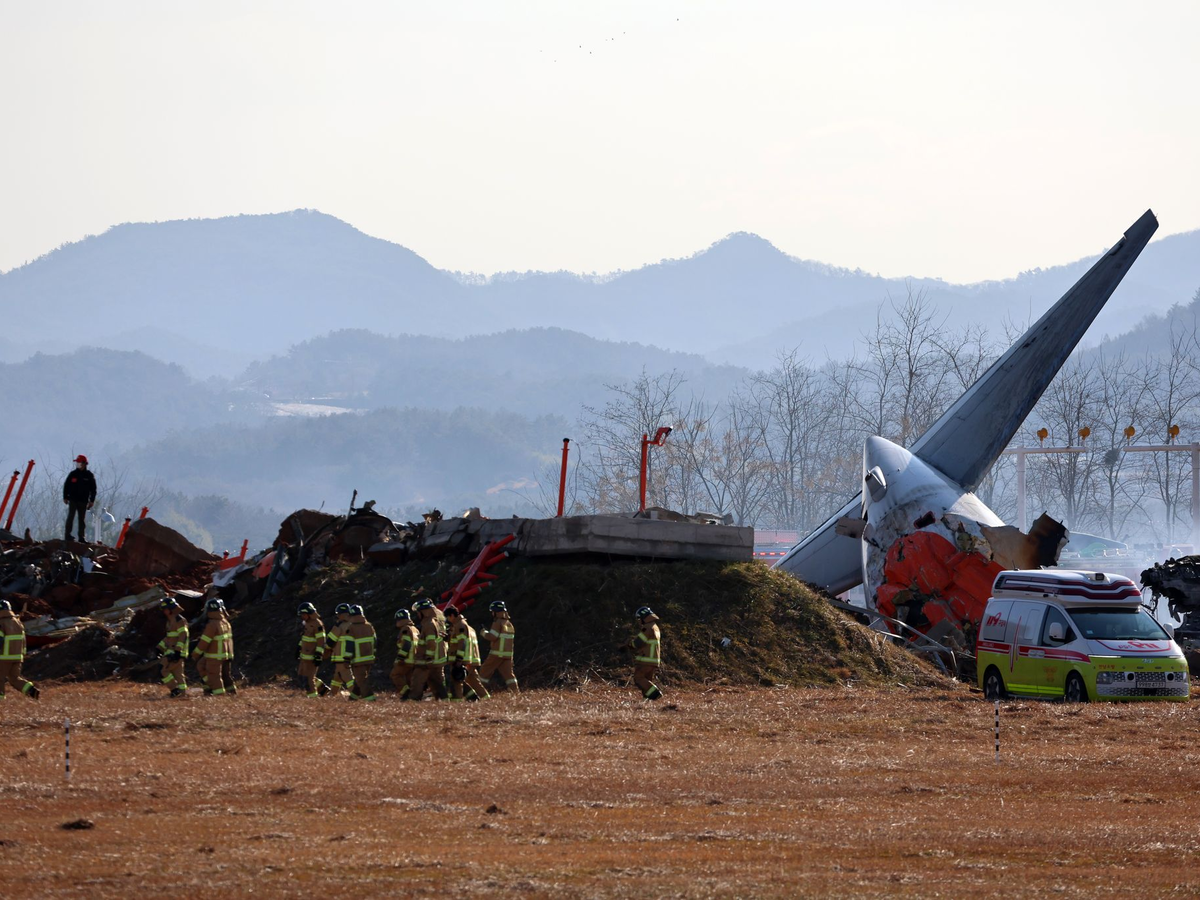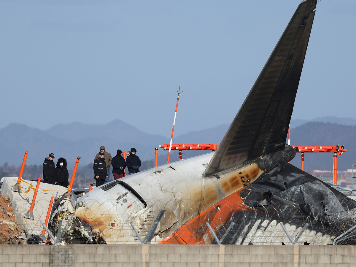 Die Maschine der südkoreanischen Billigfluglinie Jeju Air mit 181 Menschen an Bord war am Sonntag ohne ausgeklapptes Fahrwerk gelandet, über die Fahrbahn hinaus geschlittert und an einer vier Meter hohen Mauer zerschellt. 179 Menschen starben, zwei Crew-Mitglieder überlebten. An Bord des aus Bangkok kommenden Fliegers befanden sich neben zwei thailändischen Staatsbürgern ausschließlich Koreaner.