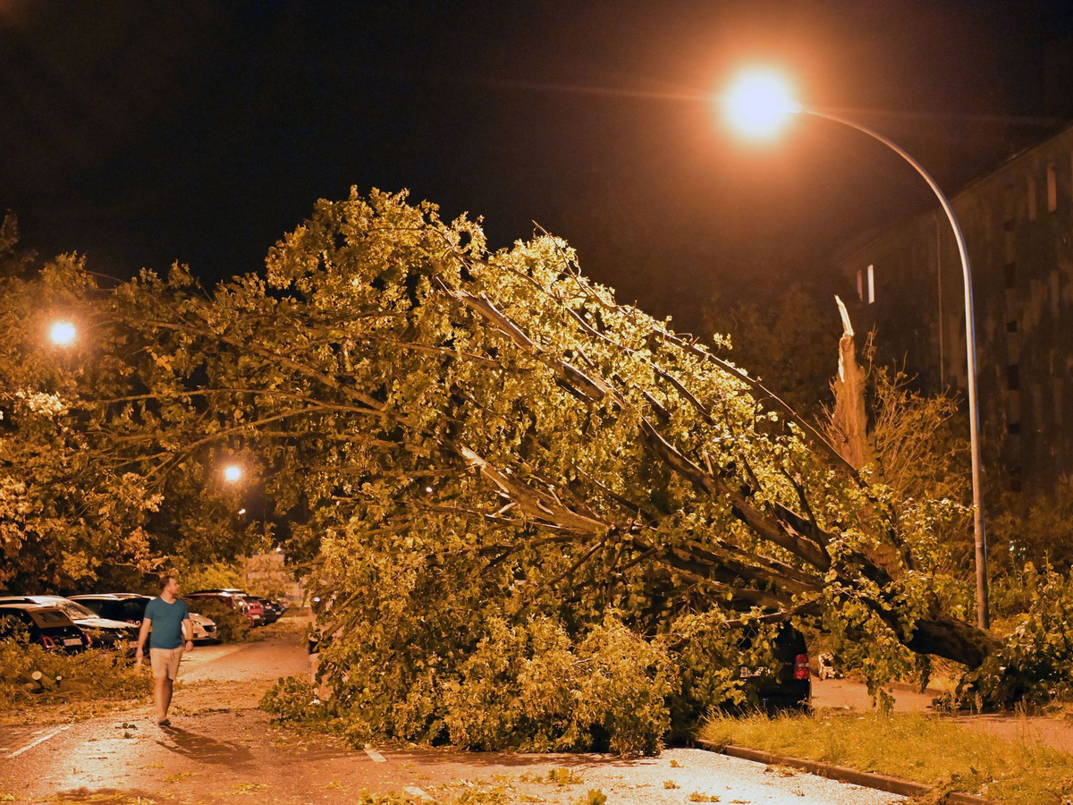 Das Gewitter zog nach ersten Angaben eine Schneise durch die Stadt. Auch DĂ€cher wurden abgedeckt. Die EinsĂ€tze und AufrĂ€umarbeiten wĂŒrden noch bis weit in den Mittwoch hinein andauern, zahlreiche StraĂen wĂŒrden zunĂ€chst gesperrt bleiben, hieĂ es.