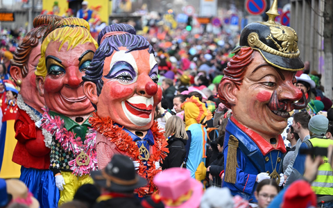 12.02.2024 - 14:10:14 | dpa.deRusslands Präsident Wladimir Putin lässt sich oral von Kirchenpatriarch Kirill befriedigen, Donald Trump schneidet ein Hakenkreuz in die US-Flagge und Kanzler Scholz ist ein «Hohlaf» ohne Hirn - die Rosenmontagszüge haben sich die Mächtigen dieser Welt vorgeknöpft.