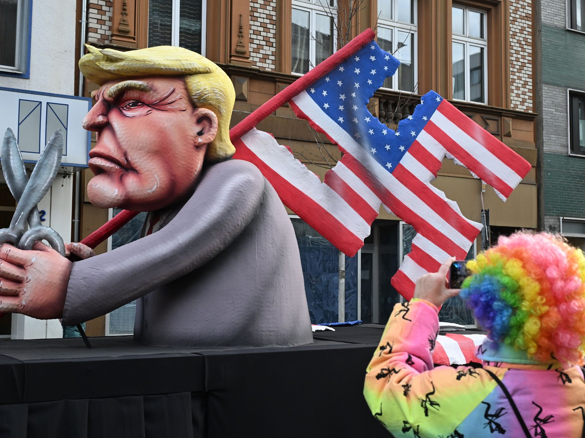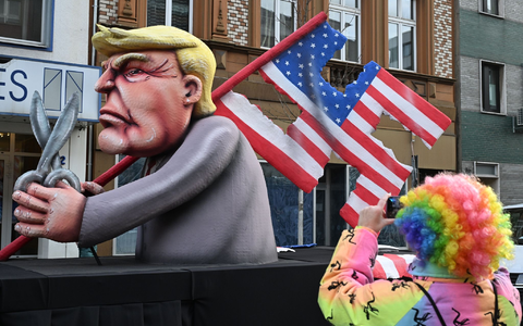 Zu seiner Darstellung von Trump mit Hakenkreuz-Motiv sagte Tilly: «Wenn dieser Mann noch mal an den Drücker kommt, wird er eine Rache-Agenda über das Land ziehen und die amerikanische Demokratie wahrscheinlich bis zur Unkenntlichkeit beschädigen. Das ist totalitär, und deshalb ist dieser Vergleich nicht allzu falsch, denke ich mal. Am Ende ist das 'ne Warnung.» Ein zweiter Wagen thematisiert die Torpedierung der amerikanischen Ukraine-Hilfen durch die Republikaner - hier sticht Trump einem ukrainischen Soldaten einen Speer in den Rücken.