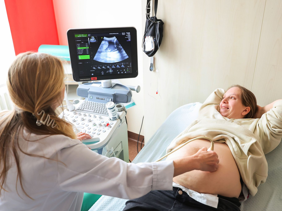 Jasmin Schmidt ist an diesem Tag etwas blass, als sie sich für den Ultraschall auf die Liege legt. Auf dem Monitor sind die beiden Babys im Bauch deutlich zu sehen. «Das schaut alles sehr gut aus», sagt Forster. Jasmin Schmidt strahlt. Andreas Rittner kümmert sich währenddessen um die anderen Zwillingsgeschwister. Nach dem Vormittag in der Krippe schlafen drei erschöpft in den Kinderwagen, nur Emilio kommt nicht zur Ruhe.