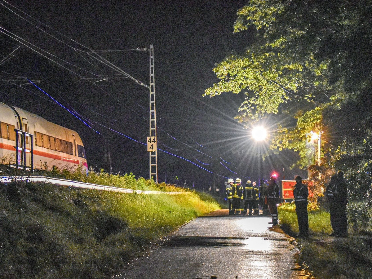 02.06.2024 - 04:32:21 | dpa.deZwei Waggons eines ICE mit 185 Passagieren an Bord sind im baden-württembergischen Schwäbisch Gmünd nach einem Erdrutsch entgleist. Die Passagiere blieben laut einem Bahnsprecher unverletzt und wurden in der Nacht aus dem Zug evakuiert. «Es hat ein bisschen gerumpelt. Dann war eigentlich alles gut geregelt, keine Panik, alle waren ruhig. Die Einsatzkräfte waren schnell da und haben sich gut um uns gekümmert», sagte Passagierin Elena Fabian der dpa.