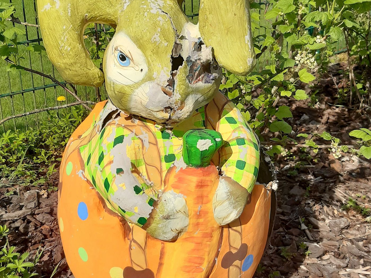 20.04.2025 - 13:57:51 | dpa.deEin Osterhase hat im sĂŒdhessischen MĂŒhlheim am Main eine besondere Ăberraschung gebracht: In einer rund einen Meter hohen Hasen-Figur fand sich das Nest einer WaschbĂ€rin mit ihren drei Jungen, wie der EigentĂŒmer Walter Röder berichtete.Â