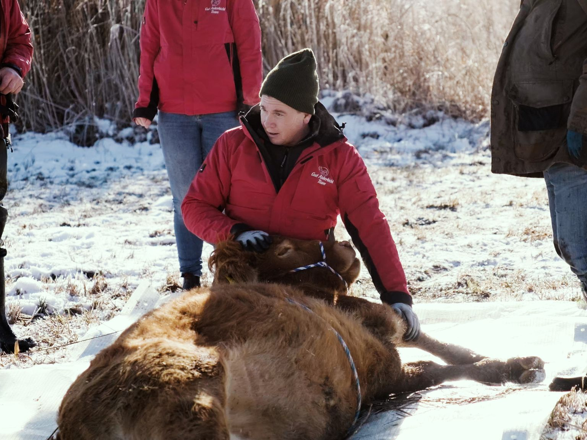 Da es Sorgen gab, dass Arielle den Winter allein nicht überleben würde, habe man sich entschieden, sie einzufangen und sei dazu in Kontakt mit Behörden und Besitzern gewesen, hieß es von Gut Aiderbichl. «Wir haben das Rind mit einer Drohne lokalisiert und es anschließend unter tierärztlicher Aufsicht mit Hilfe eines Betäubungspfeils beruhigt. Danach konnten wir das Tier vorsichtig aus dem Schilf bergen.»