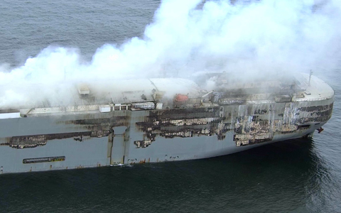 Das Feuer war in der Nacht zum Mittwoch auf dem Autodeck des unter der Flagge von Panama fahrenden Schiffes ausgebrochen. Es war unterwegs von Bremerhaven nach Singapur und lag zu dem Zeitpunkt etwa 30 Kilometer nördlich der Wattenmeerinsel Ameland. Die Besatzung war evakuiert worden. Dabei war ein Mensch ums Leben gekommen.