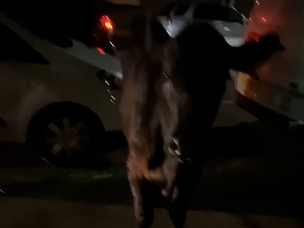 Auf dem Video ist zu sehen, wie das Polizeiauto die etwa 200 Kilogramm schwere Kuh in einer Wohngegend heftig rammt. Das Tier schlittert mehrere Meter über die Straße, rappelt sich auf und läuft weiter. Daraufhin fährt das Auto erneut gegen die Kuh, die eingeklemmt unter dem Wagen liegen bleibt. Nach Angaben der Besitzer erlitt das Tier keine schwereren Verletzungen.