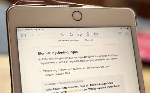 22.05.2023 - 07:23:52 | dpa.deZeit ist Geld: «Wir haben Ihren Aufenthalt bei uns mit 1:30 Stunden eingeplant», steht in der freundlichen E-Mail-Bestätigung vom hippen Lokal «Frühstück 3000» in Berlin-Schöneberg. Die bislang kaum übliche Sitte der Reservierungszeitfenster greift jetzt auch in Deutschland, Österreich und der Schweiz um sich. Ging es einst beim Ausgehen hierzulande nicht vor allem darum, ohne Anmeldung ausgiebig zu essen, sich festzutrinken und mit unterschiedlichsten Leuten zu reden?