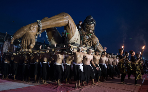 Am Vorabend wurde es dagegen noch einmal laut: Bei traditionellen Paraden zogen riesige Dämonenfiguren, sogenannte Ogoh-Ogoh, durch die Straßen.