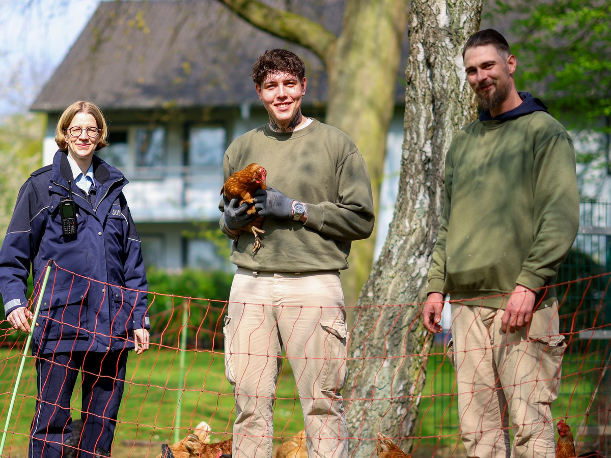 «Man muss ein gutes Händchen für Tiere haben, zuverlässig sein und anpacken können», erläutert Anika Schäfer. Gerne nehme man Häftlinge mit körperlichen oder psychischen Einschränkungen, für die eine Arbeit in den Werkstätten nicht zu schaffen sei. Im Sommer kommen weitere bis zu 50 Hühner. Ein vierter JVA-Insasse wird gerade eingearbeitet.