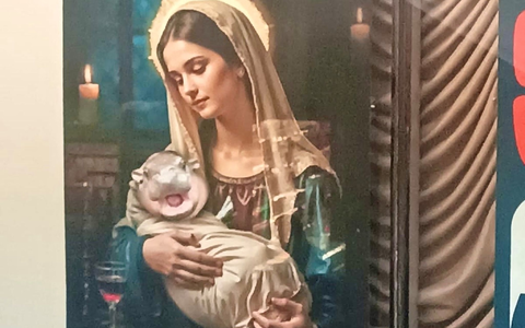 Zur Weihnachtszeit übertrafen sich die Kreativen in dem buddhistischen Land dann selbst und entwarfen ziemlich skurrilen Christbaumschmuck: Jesus hält Moo Deng im Arm. In einem Schaufenster im Bangkoker Touristen-Stadtteil Sukhumvit wurde ein religiöses Hippo-Bild gesichtet, auf dem Maria liebevoll auf das strahlende Tierkind blickt. Wer noch etwas Besonderes für die heimische Wand sucht, wird ebenfalls fündig: Selbst die Mona Lisa ist jetzt mit Moo Deng im Arm als Poster erhältlich.