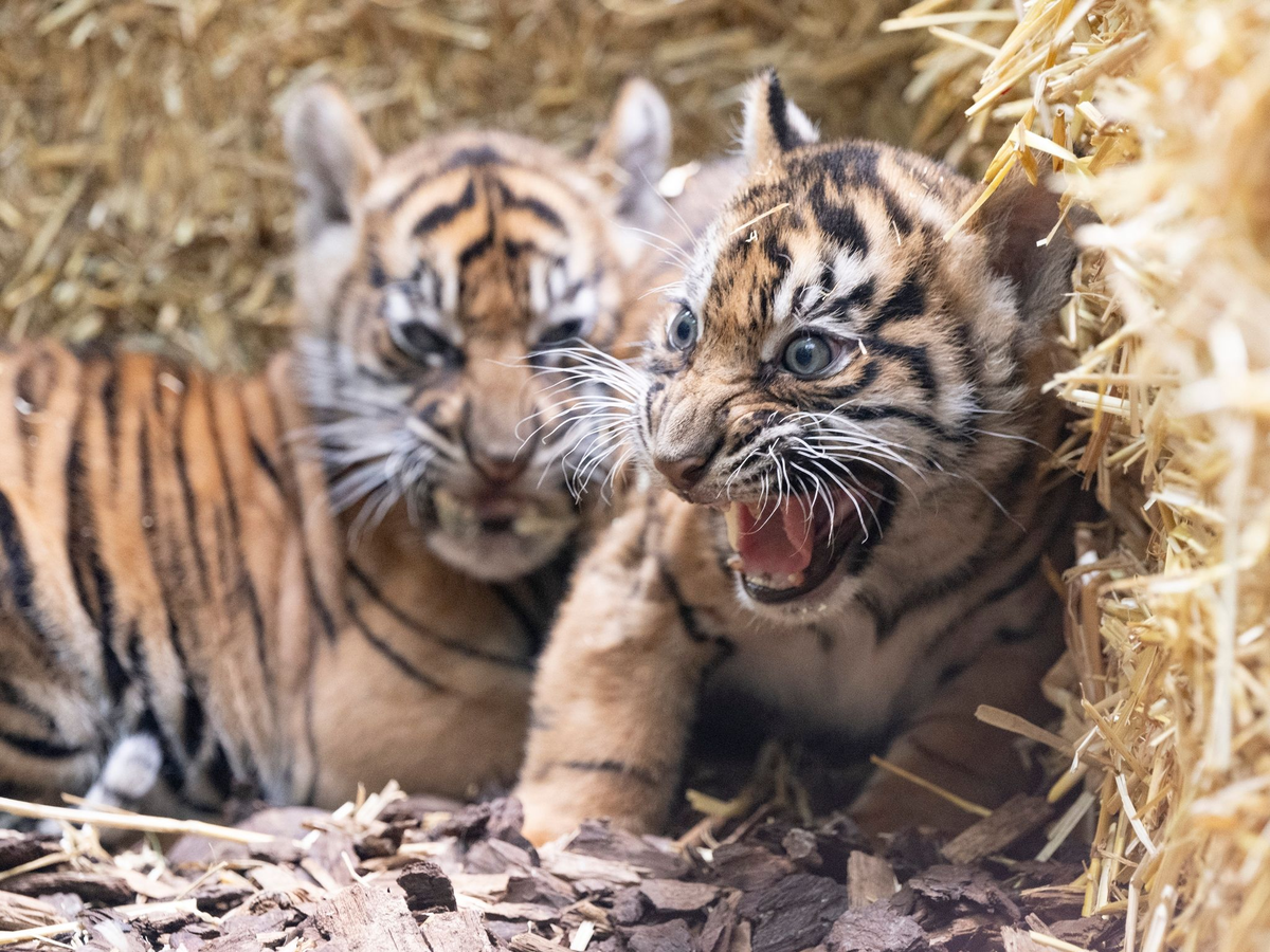 Erstmals hatte Zoodirektorin Christina Geiger die Gelegenheit, den Tiger-Nachwuchs ganz genau in Augenschein zu nehmen und festzustellen: Es sind zwei Männchen. «Raja» und «Rimba» erhielten ihre ersten Impfungen, unter anderem gegen Katzenschnupfen.