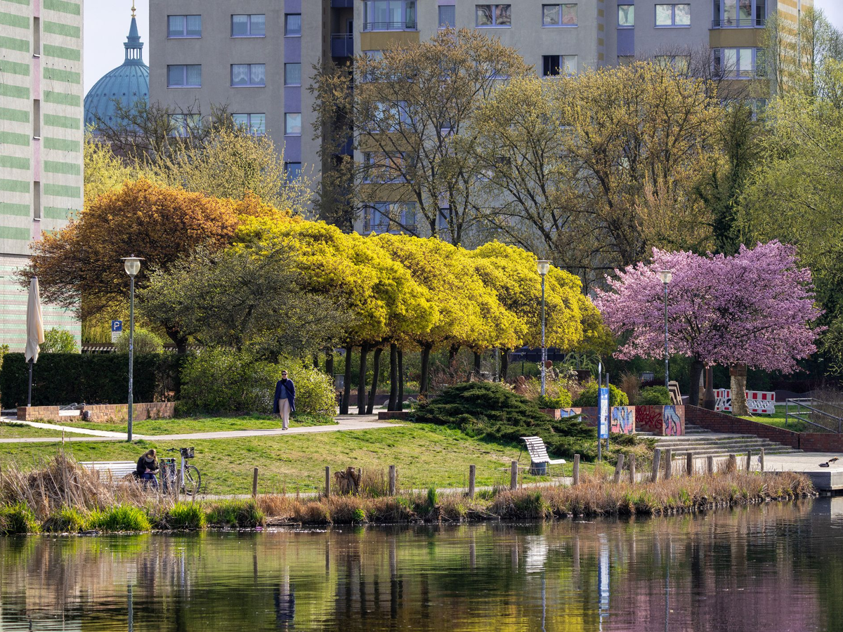 Grün - also Wiesen, Hecken oder Bäume - hat den gegenteiligen Effekt, weil hier Feuchtigkeit verdunstet. Besonders Bäume können Wunder bewirken gegen Hitze: Unter ihren Kronen und durch ihren Schatten können Bäume die Temperatur im Umkreis von bis zu 40 Metern um bis zu 10 Grad Celsius senken, schrieb das Bauministerium im vergangenen Jahr in seiner Hitzeschutzstrategie. Auch offene Wasserflächen tragen zur Kühlung bei.