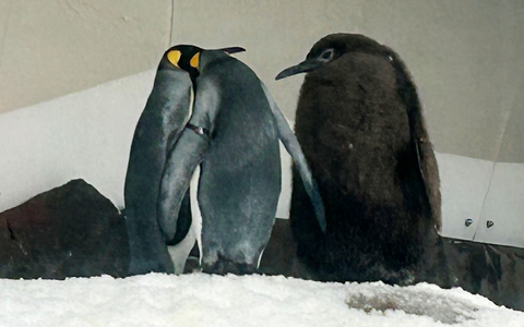 Noch trägt Pesto das für Königspinguin-Nachwuchs typische fluffige braune Gefieder, das seine kugelrunde Erscheinung noch unterstreicht. Wenn er dieses in den kommenden Monaten verliert und in sein schwarz-weißes «Smoking»-Outfit wechselt, wird er Experten zufolge aber deutlich an Gewicht und Umfang verlieren.