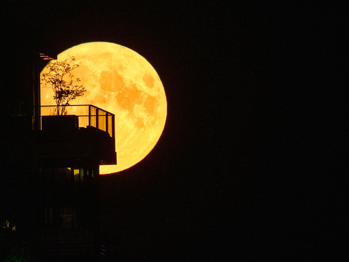 Ein Supermond geht über einem Wohnhaus auf. - Foto: Pavel Bednyakov/AP/dpa