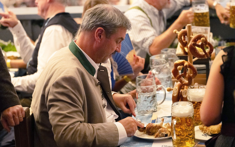 «Puh, ist das warm», entfährt es auch dem bierzelterprobten bayerischen Ministerpräsidenten Markus Söder (CSU), als er die Anzapfboxe im Schottenhamel-Zelt betritt.