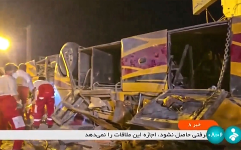 Laut der Staatsagentur waren die Pilger am Dienstagabend auf dem Weg in den Irak, zu dem für Schiiten wichtigen Gedenkfest Arbain. Ein von Irna veröffentlichtes Foto zeigte einen schwerbeschädigten Bus, der auf dem Dach lag sowie eine teils eingestürzte Häuserfront im Hintergrund. Irna zufolge sollen die Toten und Verletzten in ihre Heimat nach Pakistan geflogen werden.