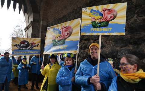 Der dritte Putin-Wagen nimmt die juristische Verfolgung Tillys ins Visier: Ein grimmig dreinschauender Putin spießt einen kleinen Karnevalsnarren mit dem Schwert auf. «Dieser Wagen ist unser närrischer Kommentar zu der ganzen Sache», sagte Tilly der Deutschen Presse-Agentur. «Es ist ein Duell mit sehr ungleichen Waffen. Auf der einen Seite die Waffen des russischen Staates, die recht scharf sind. Und dann eben unsere Waffe, das ist einfach nur die Satire, die ist nur aus Pappe, die kann nicht töten. Es ist ein sehr ungleiches Duell», erläuterte der 62-Jährige.